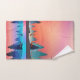 Towel set with a beautiful graphic design featuring a peaceful lake with deer. and tall pine trees being reflected in the water. Stars hover overhead.