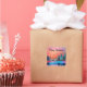Christmas stickers with a beautiful graphic design featuring a peaceful lake with deer. and tall pine trees being reflected in the water. Stars hover overhead.