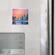 Magnet with a beautiful graphic design featuring a peaceful lake with deer. and tall pine trees being reflected in the water. Stars hover overhead.