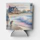 This dreamy coastal artwork captures a tranquil moment at the shoreline, where a woman strolls barefoot with her dog, the soft pastel tones of the setting sun casting a warm glow on the sand and sea. A charming beach house sits nestled among windswept grasses, its porch inviting and timeless, while a stately lighthouse watches over the horizon. Gentle waves roll in with watercolor softness, and hints of blush pink, misty blue, and sun-kissed gold give the scene an ethereal, nostalgic quality. The entire composition evokes slow living, serenity, and the quiet magic of coastal escapes. With a relaxed, coastal cottagecore vibe and a soft, painterly style, this piece blends warmth and whimsy in perfect harmony. AI generated artwork.