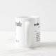 White coffee mug with black text features the words "Schadenfreude is my Guilty Pleasure". The definition of the German word "Schadenfreude" is on the opposite side of the mug.