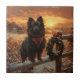 Schipperke Dog Rustic Winter Sunset Tile