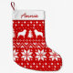Schipperkes Christmas Stocking. Red and white Christmas sweater style pattern with Schipperke silhouettes. Personalise this cute holiday stocking with your name or your dog’s name. A festive Nordic sweater style stocking to hang on your fireplace mantle. Everyone wants to be included in the seasonal festivities and our furry friends are no exception. Treat your four legged family member with a custom Xmas stocking. This cool Schipperkes pattern Christmas stocking is great for both dogs and dog lovers. Visit Jenn’s Doodle World for even more cute stockings and pet lover’s holiday decor.