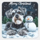 Spread some holiday cheer with these stickers featuring an adorable Schnauzer and a cheerful snowman. The snowy scene, set under a starry night sky, creates a magical winter wonderland, with snowflakes gently falling around the Schnauzer and the snowman, who sports a top hat and carrot nose. The lush green pine trees in the background complete the festive setting. Perfect for Schnauzer lovers and dog enthusiasts.