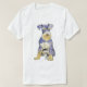 A basic white T-shirt with characterful illustration of a schnauzer and kitten. Click on "Customise It" to change the colour or size of the image. You can even add text, a message, name, or expression.