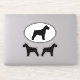 Schnauzer with cropped ears oval and die cut sticker set. These durable dog silhouette decals are waterproof and scratch resistant. Stick these Schnauzer silhouette vinyl stickers to your laptop, phone, notebook, water bottle, helmet, skateboard, or even your car. Visit Jenn’s Doodle World for even more dog breed vinyl decals and Schnauzer lover’s gifts.