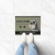 Cute doormat featuring an illustration of a Schnauzer. Customisable background colour and texts. Perfect gift for the dog lover or Schnauzer owner.