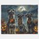 Unleash the spooky spirit with this eerie Halloween design featuring a pack of dogs under a dark, moonlit sky, surrounded by flying bats and glowing pumpkins. Perfect for those who love a touch of frightful fun with their furry friends!