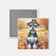 Schnauzer In Autumn Leaves Thanksgiving Art Magnet