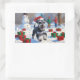 Schnauzer Running in Snow with Christmas Hat Rectangular Sticker