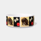 This is a heavy, durable bowl decorated with Tibbies of many colors, the perfect size for hungry/thirsty Tibs. The design is interesting and printing clear.