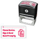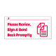 This trendy rubber stamp design features the message "Please Review, Sign & Send Back Promptly", plus a line that a signature or initials could be written above. It could perhaps be used by a teacher or an administrative professional to request that somebody review and acknowledge the contents of a document.