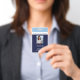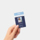 A professional employee staff badge for teachers, educators, staff of your school campus. Works for all school types private, public, pre-school, elementary,high school and college. Modern red white and black colour theme. Add employees photo, job title and school motto or creed. White, light blue and dark blue modern colours.