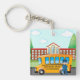 A school bus and its driver outside a school. This design looks really effective on these Keychain