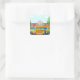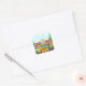 A school bus and its driver outside a school. This design looks really effective on these Stickers