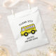 Yellow school bus birthday party favour bag with customisable text.