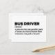 A hilarious school bus operator definition postcard for those who handle chaos with patience and humour every morning. Makes an ideal gift for school transport staff or bus enthusiasts. Perfect for funny bus driver postcards, thank you notes, or retirement cards.