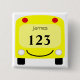 Customise this happy face school bus tag button badge with your child's name or class/teacher and bus number. You can modify or remove any of the text, change size or font to your own design choice.