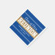 High school or Class reunion table napkins. Fun gold gradient band with bold white text. All text is customisable and can be changed for your own party needs. Gold and blue themed class reunion party table decor.