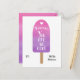 A watercolor illustration of a popsicle in pink and purple. The text says Valentine, You are so cool. Personalise these cards with your child's name. They can be handed out as is or placed in an A2 size envelope (purchased separately). The back is a full size version of the watercolor art. You can place a message or upload a photo in that space. This design is available in three other colours:
