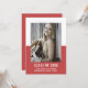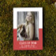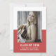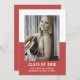 School Colour Block Graduation Announcement with a classy and modern two-tone photo template design in red. Add a photo and graduation details to customise. Background colour on back side of invite may be changed to complement the photo or to add a school colour.