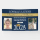 Fun sign featuring your congrats to the graduate in a classy and fun school colours theme, with their grad photos printed directly on the material. A beautiful graduation keepsake.