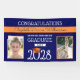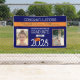 Fun sign featuring your congrats to the graduate in a classy and fun school colours theme, with their grad photos printed directly on the material. A beautiful graduation keepsake.