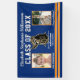 Fun sign featuring your congrats to the graduate in a classy and fun school colours and school mascot design, with their grad photos printed directly on the material. A beautiful graduation keepsake.