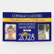 Fun sign featuring your congrats to the graduate in a classy and fun school colours theme, with their grad photos printed directly on the material. A beautiful graduation keepsake.