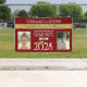 Fun sign featuring your congrats to the graduate in a classy and fun school colours theme, with their grad photos printed directly on the material. A beautiful graduation keepsake.