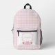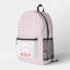 The school-themed crest gives this backpack a fun, cheerful feeling your student will love. A light pink gingham pattern covers the backpack with a personalised crest on the front pocket. Colours include light pink, red and yellow. You can personalise with a student's name. If you have any questions or need help customising this backpack, please reach out. I'm happy to help.