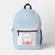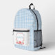 The school-themed crest gives this backpack a fun, cheerful feeling your student will love. A light blue gingham pattern covers the backpack with a personalised crest on the front pocket. Colours include light blue, red and yellow. You can personalise with a student's name. If you have any questions or need help customising this backpack, please reach out. I'm happy to help.