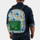 A fun backpack with a school theme that can be used all year round. This sturdy bag is great for books, sports gear, travel and more. It has a zipper pouch in the front, designed to look like a chalkboard, with an area for you to customise.