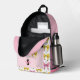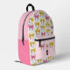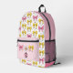 Colourful and cute girls' Monogram Printed Backpack, school bag, featuring adorable bow pencils and happy daisies in retro coquette style in white, pink and yellow. Easily personalise the text or leave it blank. - Kate Eden Art