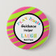 This is a Guidance Helper hall pass. it has an animal print background with an outlined circle. In the circle are the words "LAUGH, FRIENDS, and PLAY" in colourful writing. Written along the bottom is the words Hall Pass. Be the 1st to have a personalised hall pass in your school!! Check out the many other designs and school helper buttons you can personalise.