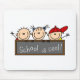 Three stick figure kids with big smiles and a school writing board that reads "School is Cool!" on back to school Tshirts, mugs, cards, stickers, buttons, and more that can be customised.
