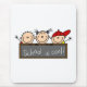 Three stick figure kids with big smiles and a school writing board that reads "School is Cool!" on back to school Tshirts, mugs, cards, stickers, buttons, and more that can be customised.
