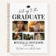 Modern graduation keepsake guest book featuring 6 photos of the graduate, the text "hats off to the graduate", their name, class year, a mortarboard, the inspirational quote "the tassel was worth the hassle", and a personalised message on the back that can be changed or removed.