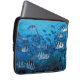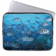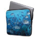 Wonderful sea life theme with school of striped tropical fish in blue on blue tones.