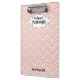 A functional but oh-so-stylish clipboard. Designed exclusively for school psychologists. This clipboard features a happy chevron design with added details in shades of pink and light green. Sturdy, well made construction and the best clip around. It will stand the test of time and continue to look stylish well into the future! Be sure to customise with YOUR name at the bottom.