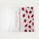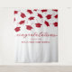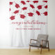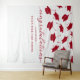Graduation party tapestry featuring a simple white background that can be changed to any colour, falling red mortarboard caps, and a congratulations text template that is easy to personalise.