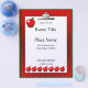 A graphic design of a clipboard with apples on a event flyer. The flyer has text templates for your personalisation.