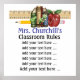 This has been a big hit with my teacher friends and customers along with my other teacher posters, so I'm offering it several different ways for the new school year. Simply type over each line to add your rules. Eliminate / decrease the size of some of the text. Vary the colours per rule. Have fun with it. That's half the fun of Zazzle ! If your school is interested in purchasing this as rules for the school, please tell your administrators that Zazzle offers generous quantity discounts, and many of my customers are happy to use that daily. Thank you so much, and please pass my store address on to friends ... Thank YOU for being here, and please visit often, Sharon Rhea Ford (NBCT - Art) www.zazzle.com/sharonrhea* (Check out my School - Teacher Section for more and matching products also !)