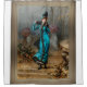 This wonderful fall coloured ,portrait depicts an auburn haired young lady standing at the edge of some steps in a park by a stone railing and balusters.