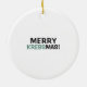 Science themed ornament with an illustration of the Kreb's cycle, an important step in cellular respiration. Text on the front reads "Merry KREBSMAS." Watercolor Christmas tree with star in centre. Great for science teachers, lab partners and biology lovers.