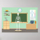 A skeleton at the front of a school science class. This design looks really effective on these Poster
