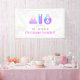 This cool "birthday experiment" girl's science birthday party welcome banner features a white background with flasks, and a test tube in neon pink. Personalise for your needs. You can find matching products at my store.
