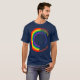 I give wanted to give this a 4 instead of a 5 because these Basic DARK T0shirts run unexpectedly SLIM or Narrow. Which is great if you do not have a potbelly, but I have a paunch. It isn't the shirt's fault that I've got a beer belly. The design and shirt itself is a quality cotton shirt. The color is more of a deep purple, but still a very pretty color. The Basic DARK T-shirts run a bit SLIMMER than the Basic Ts. The neck is a fraction narrower (or seems to be narrower) also. I'm a paunchy middle-aged woman and my neck is 12 inches (31cm) thick and the neckline fell about the same as in the photo of the man, and I had the desire to tug it a bit. So if you're a thick necked man or like loose shirts, be aware these are slimmer shirts. Once I get rid of my lockdown paunch it'll look great. The shirt washed well in cold water with no apparent bleeding. We don't have a dryer, so it hung dry. Did not shrink. Love the colors and the design. The design looks smaller on my shirt than it does on the model on-line. But still, it looks good on the shirt. The printing looks as it does on the model, just the size seems fractionally smaller. Washed garment in cold water, hung dry and design appeared unaffected.