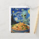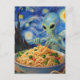 Scifi Blue Alien Eating Noodles Veggies Van Gogh Postcard