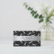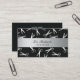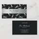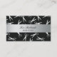 Hair stylist business card in blueish black and silver. A pattern of silver scissors against a black background, with a silver label with your name and title.